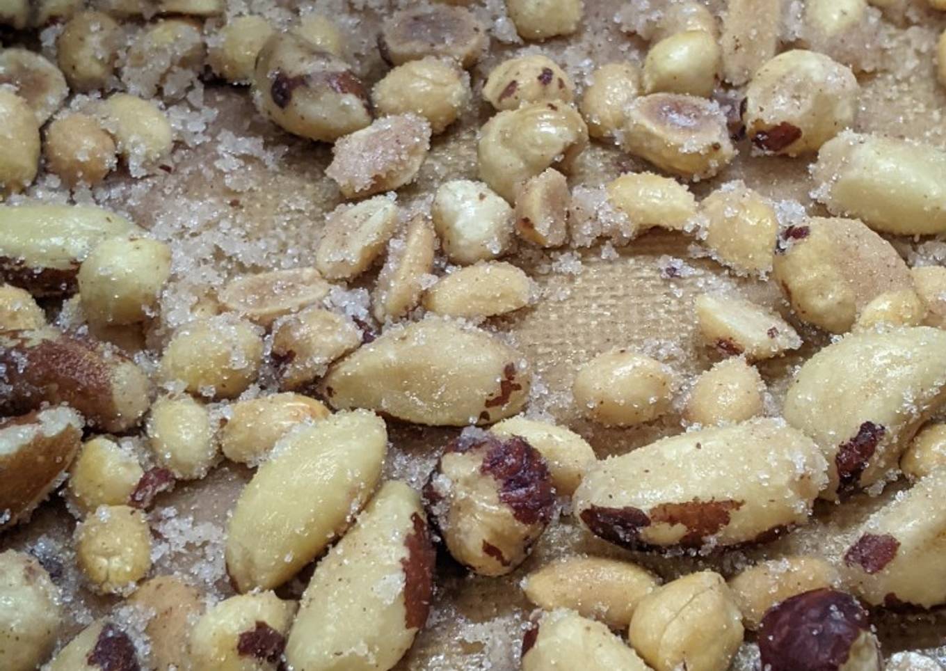 - Remove from heat and add in nuts. Mix to ensure even coating on nuts then set aside.