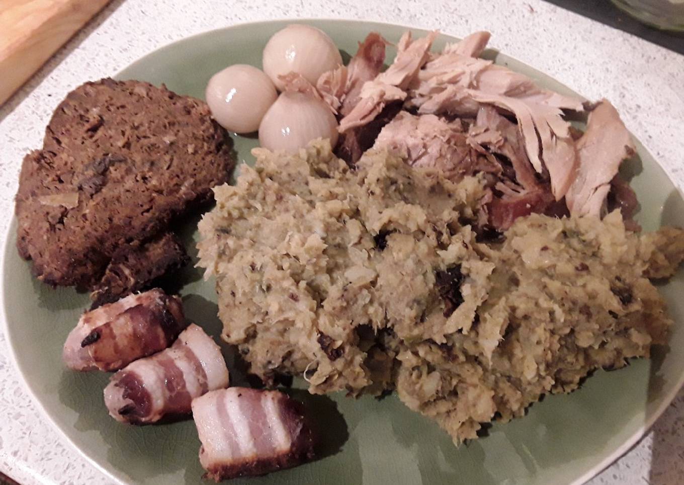 - Serve with cold meats, stuffing and pickled onion from day before. Garnish with HP sauce if so desired.