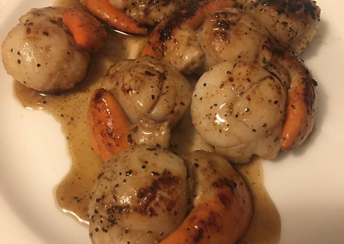 - Slightly salt and pepper both sides of scallops