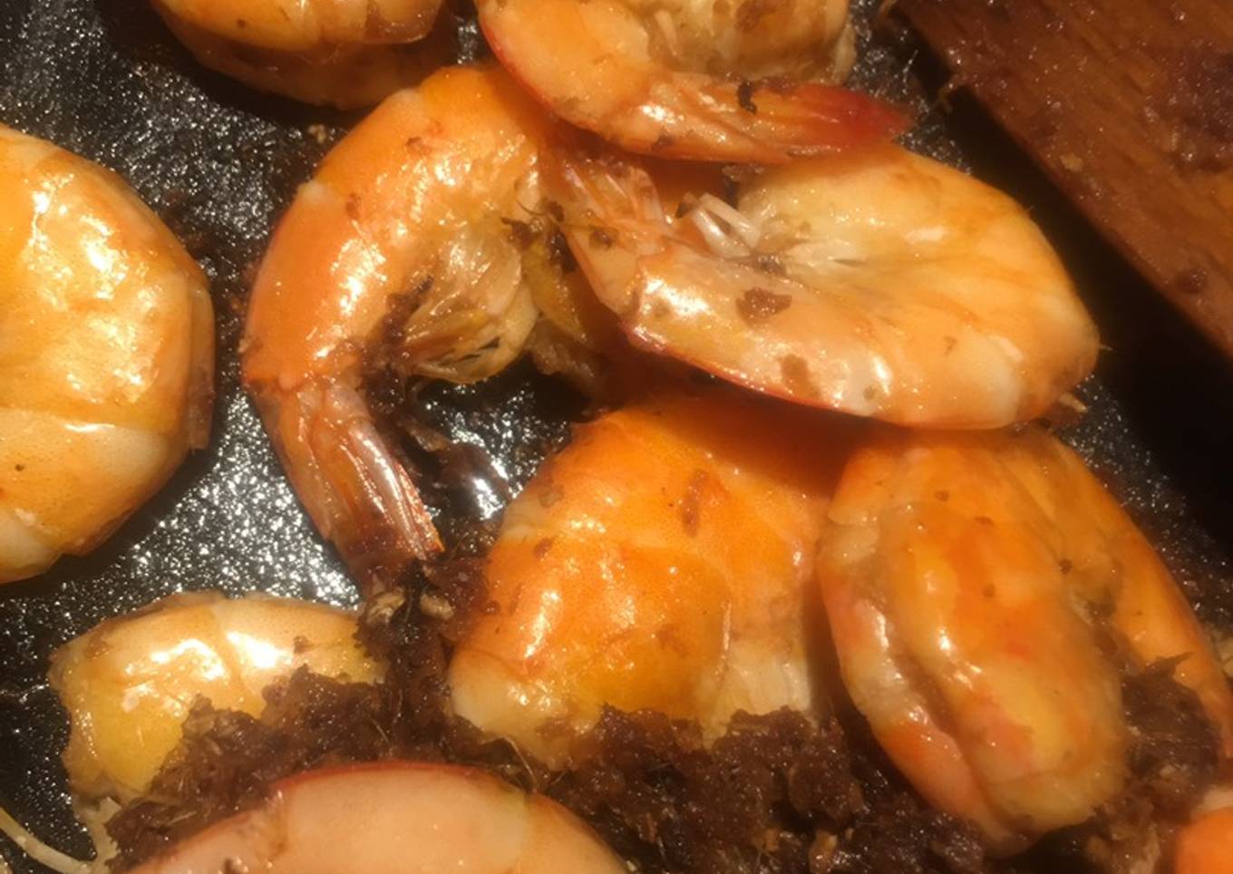- After the shrimp in, do not stir, only stir occasionally slowly. Add white wine in between and salt, sugar. Do not add any water, if it is too dry add slightly more soy sauce.