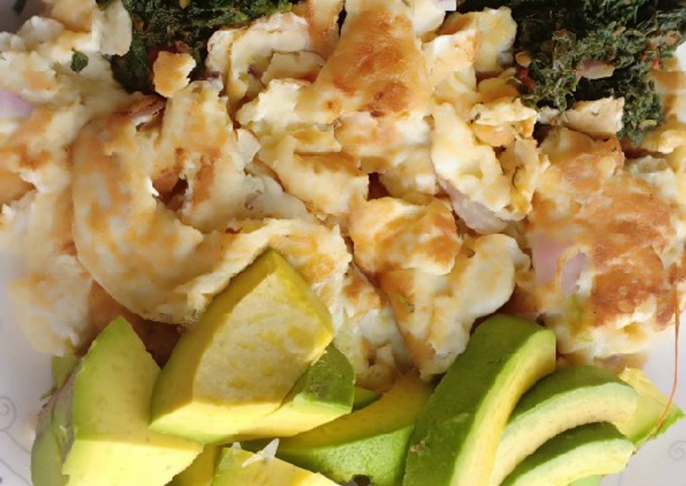 - Heat your pan out the coconut oil and put the eggs let them brown then turn the other side