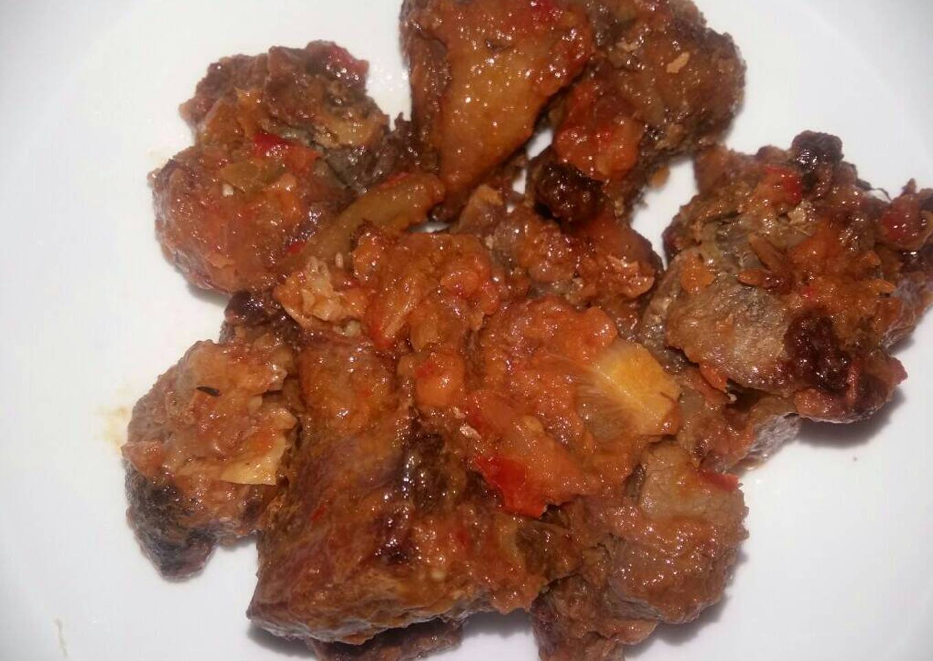 - Blend pepper, onions, garlic and ginger and set aside; add 2tbsp of pepper paste and toss into the chicken leave it to marinate as long as you wish and send it to the oven