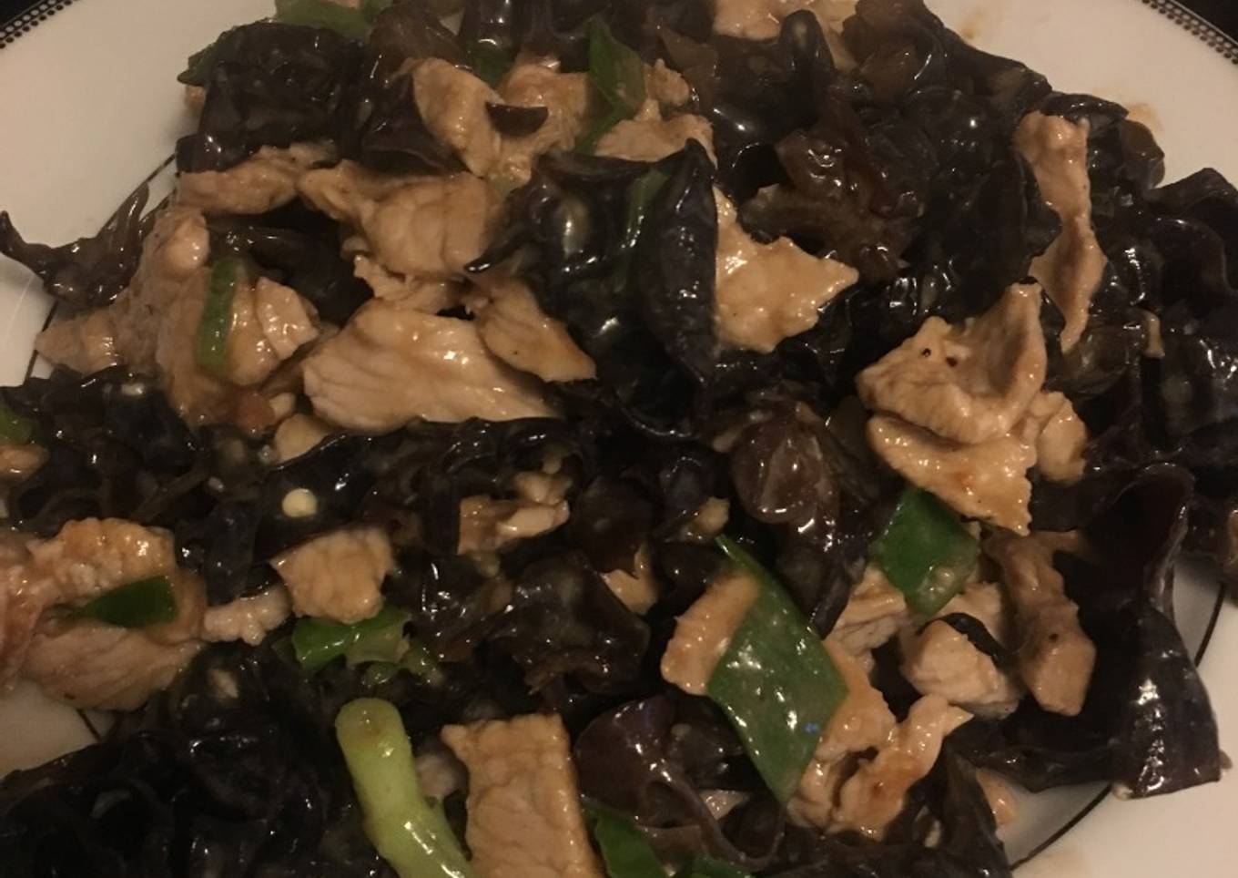 - Now add a little more oil to fry the ear mushroom for about 2 mins,in with the pork, keep stir fry for further 3 mins, add salt and soy sauce and pepper to taste, add in fresh pepper.