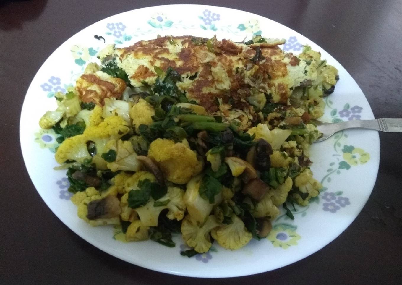 - Add the fired vegetables in the omelette and fold.