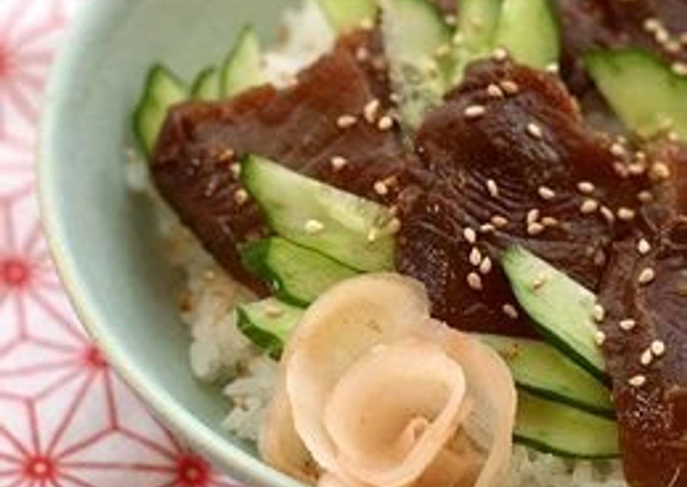 - Fill rice bowls with sushi rice, and top with bonito from Step 1 and cucumber slices from Step 2, sprinkle with sesame seeds, and add a touch of picked ginger.