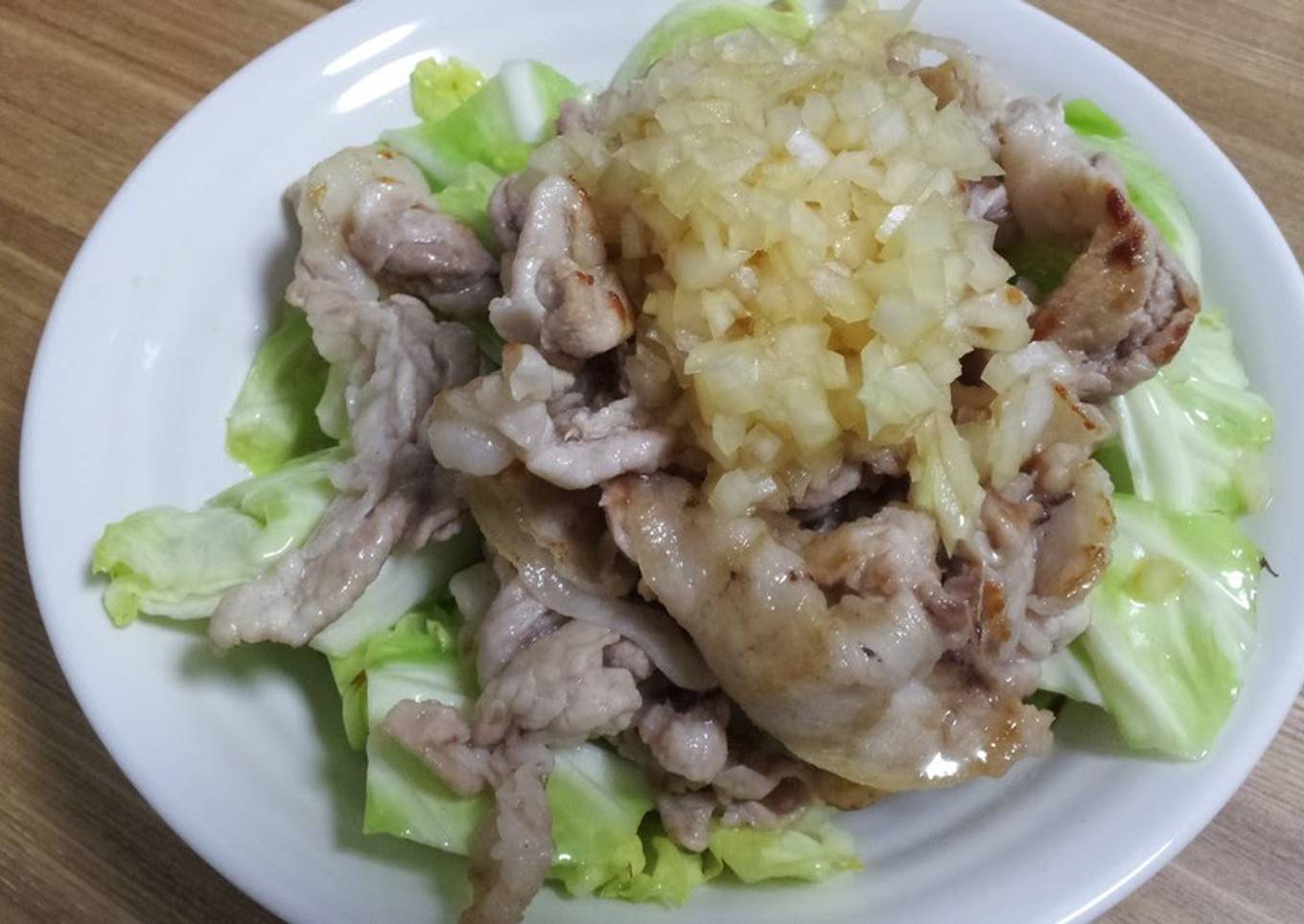 - Pour the onion-ponzu sauce over all! It's amazingly tasty! Mix the cabbage, pork and onion sauce together and enjoy.