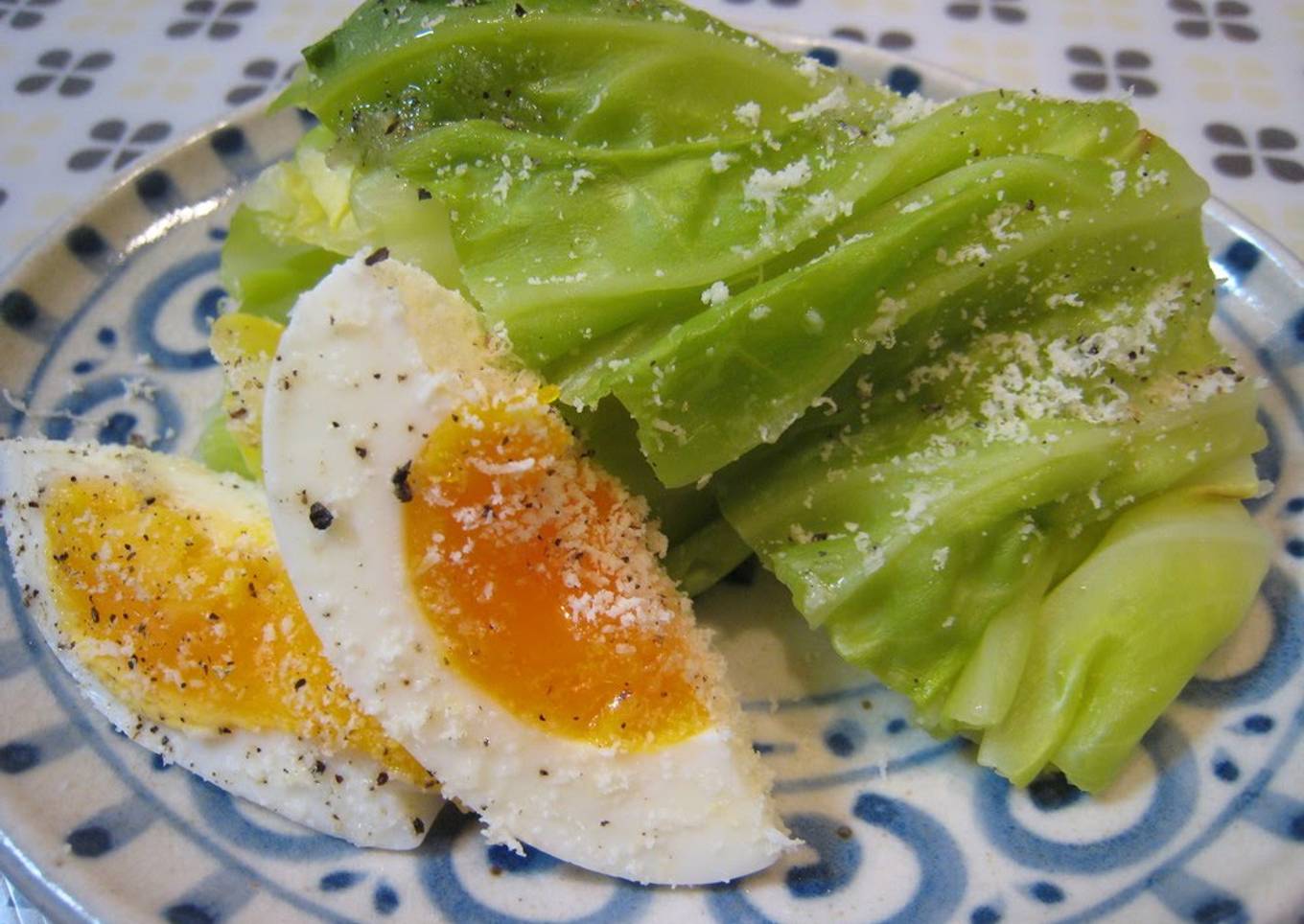 - It's also tasty served with salted eggs. In this case, lessen the salt for seasoning the cabbage. Please refer to "Salted Egg Yolks Boiled Eggs,". https://cookpad.com/us/recipes/144380-boiled-eggs-with-salt-flavored-yolks