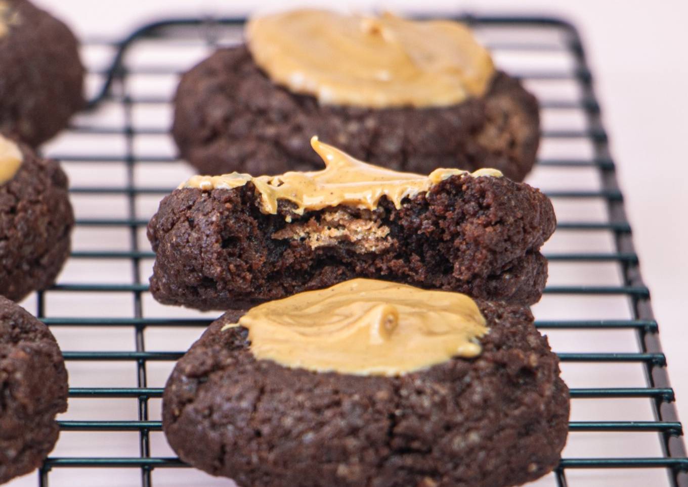Bite into brownie-like peanut butter cookies loaded with KitKat Chunky and drizzled with melted peanut butter.
