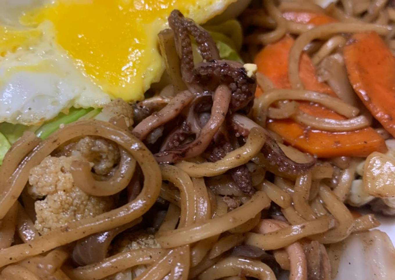 - And then add the canton noodles, cook until the liquid is absorb by noodles.