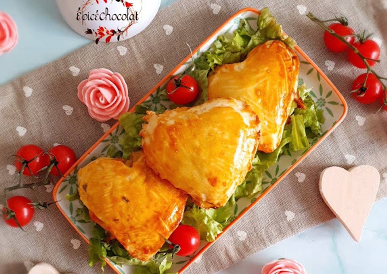Une recette salée, ca fait un moment.... Aujourd'hui je vous propose une recette de mini tourte que j'ai réalisé avec des restes de poulet rôti, et une pâte brisée light (recette sur mon blog et sur mon compte cookpad), il est tout à fait possible bien sûr d'utiliser une pâte brisée classique ou même une pâte feuilletée. Mes mini tourtes sont en forme de cœur, car au vu de la St Valentin qui arrive on voit des cœurs partout..... donc voilà.... Mais j'en ai aussi réalisé sous forme de chaussons. Voici la recette :