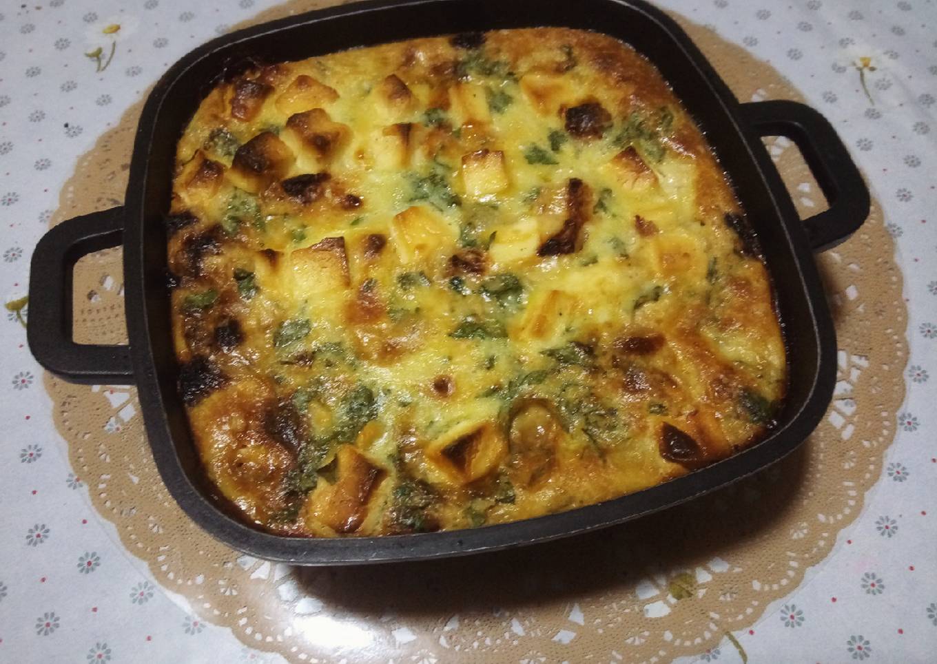- Beurrée un moule ou une marmite qui vat au four, placez la pomme de terre et les bouquets de chou-fleur.
