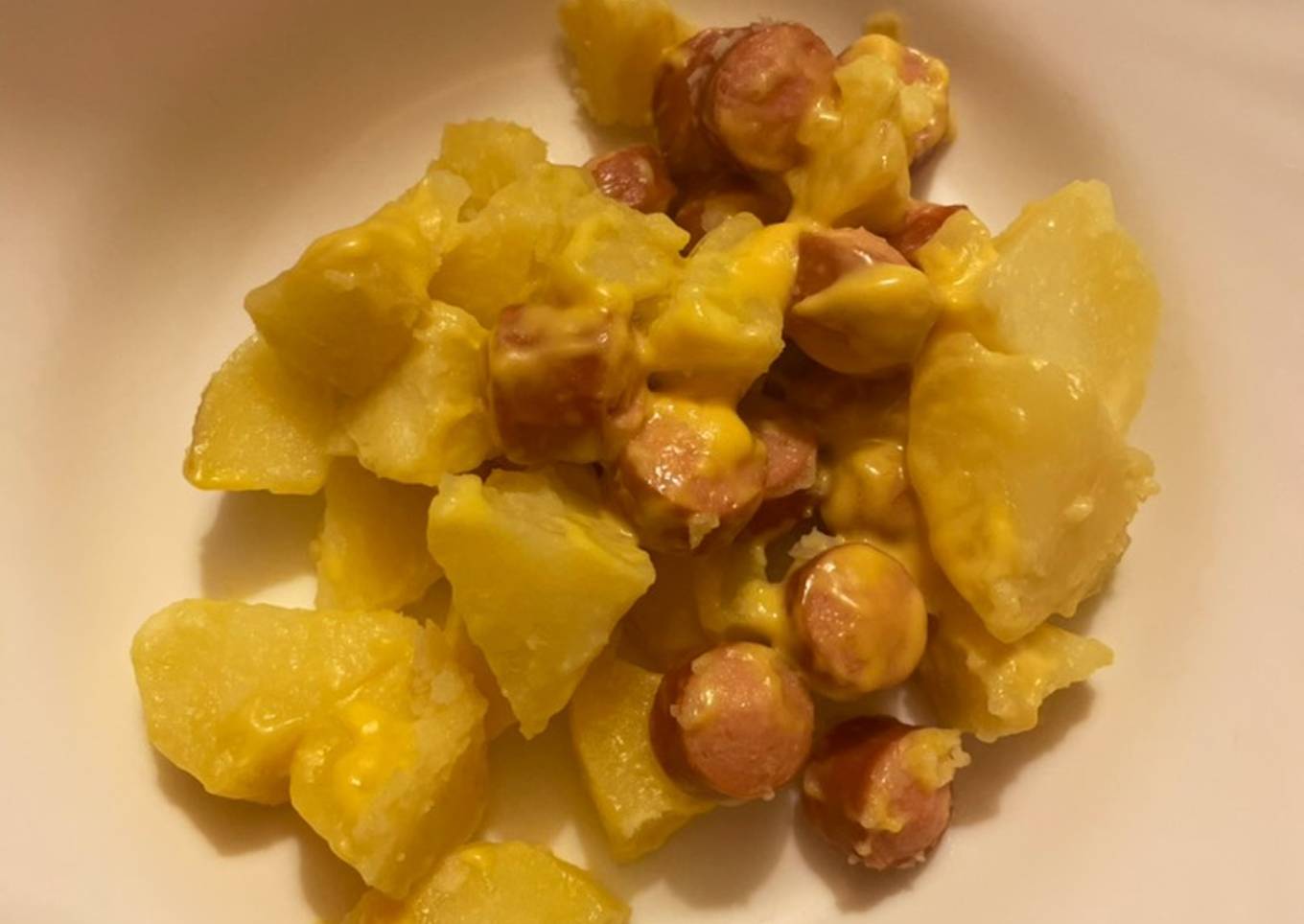 - Dans le panier, 500gr de pomme de terre, les knacky, recouvrir avec le cheddar