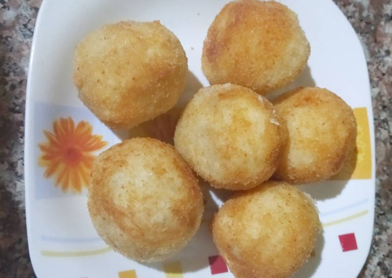 - Égouttez et écrasez la pomme de terre, ajoutez l'ail haché et formez des boules.